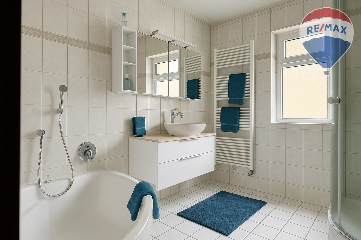 Weiter geht es mit Hausnummer 24a, errichtet im Jahr 1994. Dieses moderne Haus erstreckt sich über das Erdgeschoss, das Dachgeschoss und einen Teil-Speicher und bietet eine Wohnfläche von etwa 104 m². Die vier hervorragend geschnittenen Zimmer, darunter eine stilvoll eingerichtete Küche und zwei moderne Bäder, garantieren höchste Wohnqualität. Besonderes Augenmerk verdient die Fußbodenheizung, die in manchen Zimmern verlegt ist, in Kombination mit einem gemütlichen Pelletofen, die das Haus auch an kältesten Tagen in eine Wohlfühloase verwandeln. Edle Materialien wie Granit und Marmor verleihen dem Interieur einen Hauch von Luxus und Exklusivität, ebenso wie das bis unter der Dach geöffnete Wohnzimmer, das zudem ein großzügiges Wohngefühl vermittelt. Zwei Balkone erweitern den Wohnraum nach draußen und laden dazu ein, die Sonne zu genießen. Eine integrierte Garage mit 2 hintereinanderliegenden Stellplätzen bietet nicht nur Schutz für Ihr Fahrzeug, sondern auch zusätzlichen Stauraum.