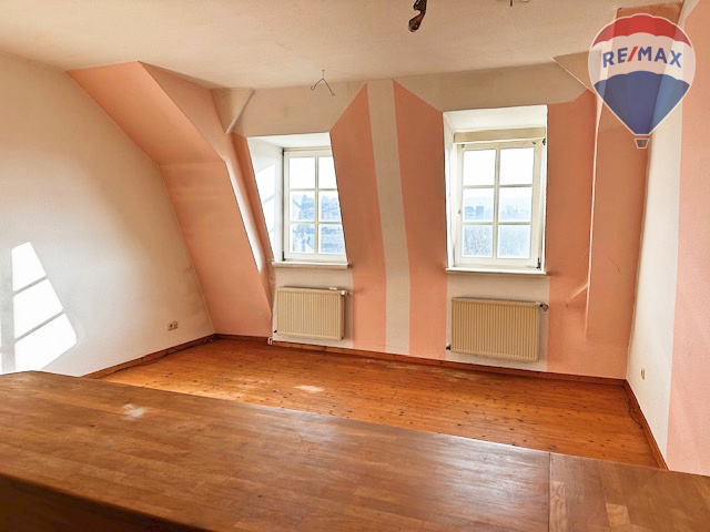 Die Wohnung liegt im Dachgeschoss und verfügt über ca. 47 m² Wohnfläche. Die Wohnung verfügt über drei Zimmer, darunter ein Durchgangszimmer (das sich ideal als Büro eignet), sowie eine zum Wohnzimmer hin offene Küche und ein Badezimmer. Die historische Wohnung steht aktuell leer und eignet sich damit ideal sowohl zur Eigennutzung als auch als Kapitalanlage mit kurzfristiger Vermietbarkeit. Entspannen können die Bewohner der Wohnung entweder im hauseigenen Garten oder im wunderschönen Schlossgarten, der sich in direkter Nachbarschaft befindet.
